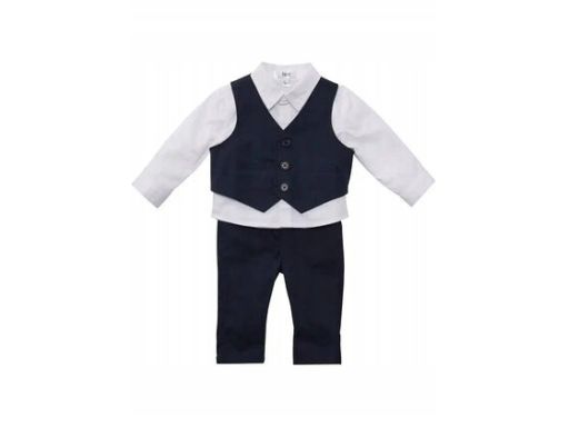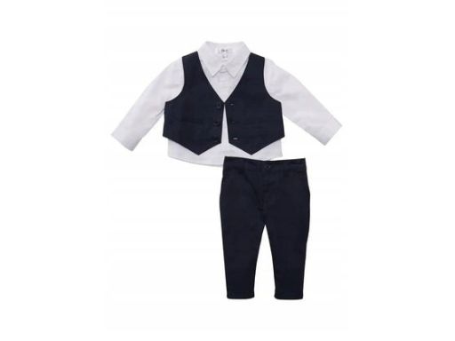 - kamizelka oraz spodnie w kolorze granatowym, koszula w kolorze białym
