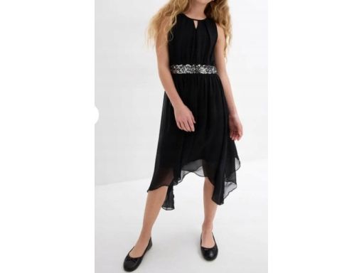 B.P.C sukienka dziewczęca asymetryczna z cekinami granatowa r.170cm