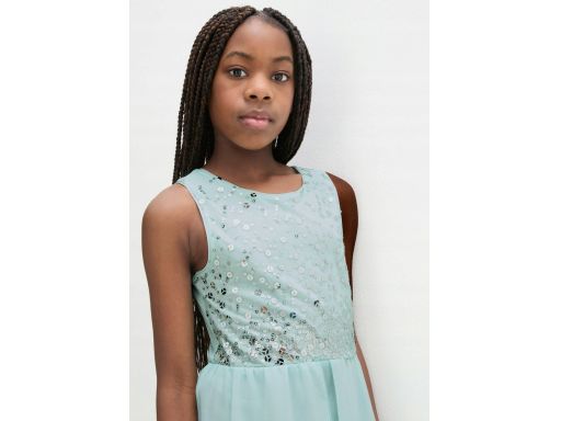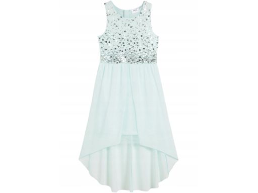 B.P.C sukienka dziewczęca asymetryczna z cekinami miętowa 158.