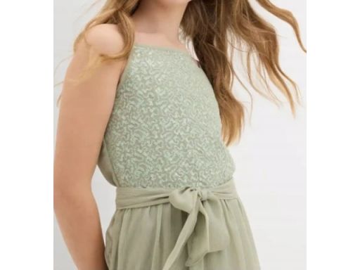 B.P.C szyfonowa sukienka dziewczęca oliwkowa z cekinami ^158